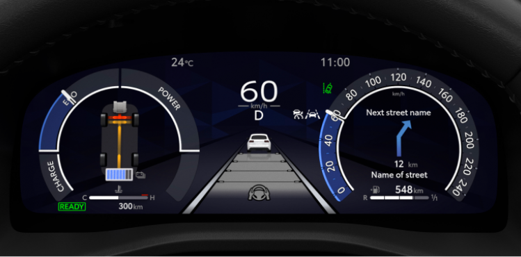 Bảng đồng hồ 12.3" sắc nét cùng hệ thống hiển thị thông tin trên kính lái giúp khách hàng dễ dàng theo dõi, đồng thời tăng thêm vẻ sang trọng và tiện nghi của không gian nội thất.