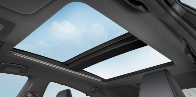 Cửa sổ trời mở rộng tối đa, mang ánh sáng tự nhiên vào không gian xe