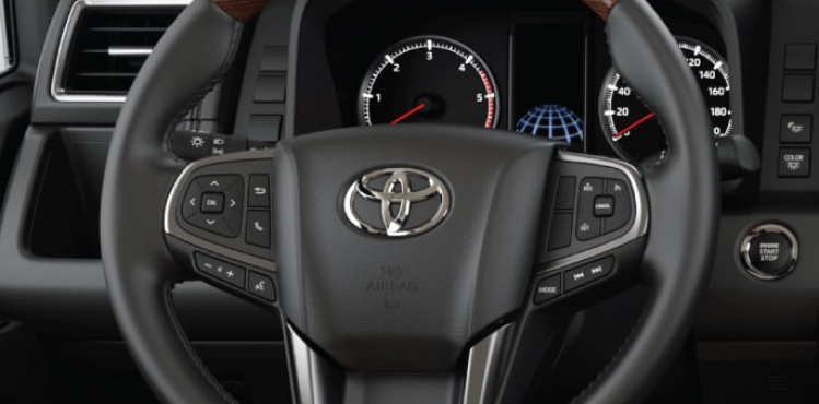 Tay lái kết hợp chất liệu da và ốp gỗ sang trọng cùng sự phân bổ tối ưu các nút điều chỉnh, màn hình đa thông tin và các tính năng hỗ trợ lái, giúp tăng cường khả năng kiểm soát cho người lái.