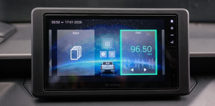 Màn hình cảm ứng 9 inch kết nối điện thoại không dây, cùng 9 loa JBL biến Hilux trở thành hệ thống giải trí di động ngay trên xe, mang đến trải nghiệm âm thanh sống động trên từng cây số.