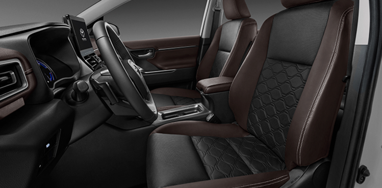 Ghế bọc da màu nâu đen cao cấp cùng họa tiết dập nổi, thiết kế cứng cáp ôm lấy thân hành khách mang đến sự êm ái khi ngồi.